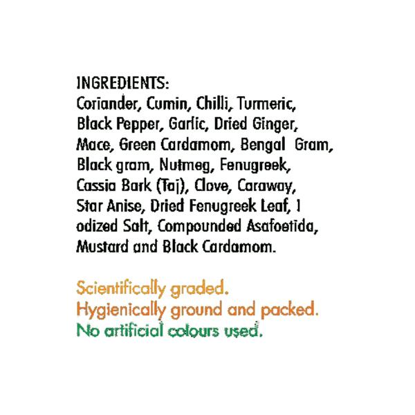 Elevate your culinary journey with Everest Kitchen King Masala, a classic blend that infuses vegetable curries with a lordly taste and a mild, subdued flavour. Crafted with a rich combination of coriander and turmeric, this masala powder lends an appetising golden hue to your dishes, making them irresistible. Ideal for preparing the much-loved Indian vegetarian dish, Mattar Paneer, this versatile blend also enhances the flavour and fragrance of a wide range of paneer curries and light gravies. Designed to withstand high heat without losing its potency, Everest Kitchen King Masala ensures a consistent and robust flavour in every bite, whether you're preparing butter paneer, vegetable curries, or delectable dal preparations. Embrace the rich yet mild flavour of this exceptional spice blend and elevate your culinary creations to new heights.
