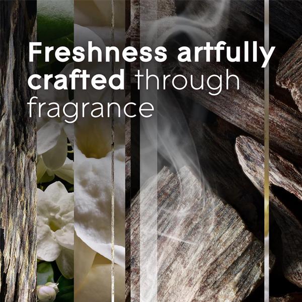 Indulge in the magnificence of classical luxury with Glade® Elegant Amber & Oud room freshener spray. The essence of exotic spices is blended with bergamot and violet leaves, and you’ll find the peacefully uplifting notes of warm amber, fresh jasmine, oud, vanilla beans and cedarwood. It’s earthy and exciting, yet peacefully uplifting and deeply relaxing. Designed to fight tough odours, and leave behind a warm exotic fragrance, Glade® air fresheners can be used on a daily basis or as the final touch after your cleaning routine. This fragrance spray instantly infuses the air with passionately crafted fragrances.
