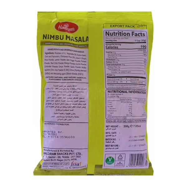 Haldirams Nimbu Masala is a sour and salty potato noodles treat. A spicy lemon tasted extruded snack; it is crusty and delicious.