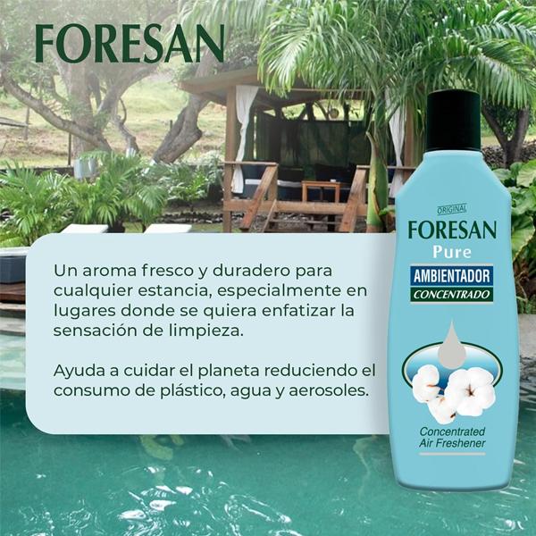 Just a small amount of FORESAN PURE to remove bad odors and provide a pleasant and long-lasting environment. Pour a few drops in the corners preferably after cleaning the toilet. You will quickly appreciate the pleasant aroma that the product’s action provides.